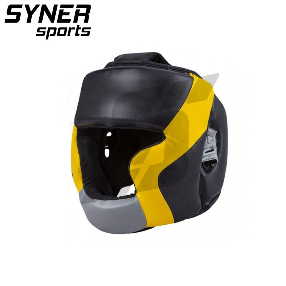 หัวมวยแบบเต็มหน้าวัสดุ PU ที่กำหนดเองสีดำ/เทาสำหรับออกกำลังกาย MMA เทควันโดดีไซน์ใหม่