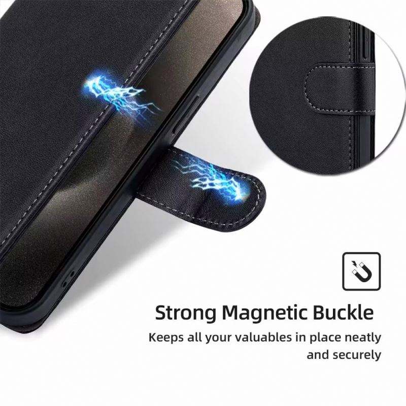 เคสโทรศัพท์แบบพับได้พร้อมขาตั้งแม่เหล็ก PU+TPU แบบกำหนดเอง พร้อมช่องใส่บัตรและฟิล์มกันรอยหน้าจอสำหรับ Pixel