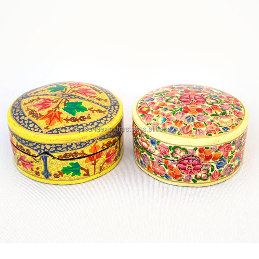 กล่องใส่ของตกแต่งทำจากกระดาษปั้นแบบกำหนดเอง กล่องใส่ของจุกจิกทรงกลมลายดอกไม้สุดหรู กล่องงานฝีมือเพ้นท์ลายด้วยมือ