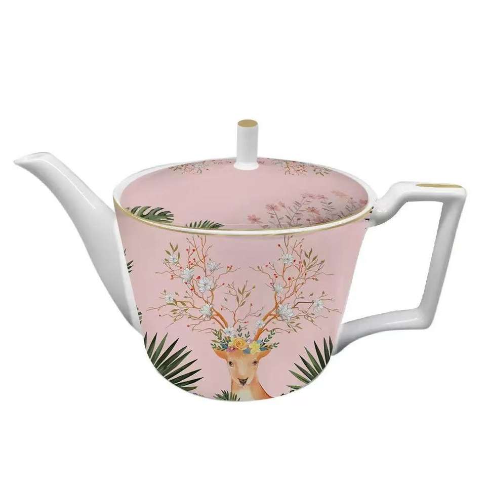ชุดจานชามเซรามิคพกพาสำหรับเด็ก ลายสัตว์ สีชมพู สำหรับกลับไปโรงเรียน แบบกำหนดเองได้