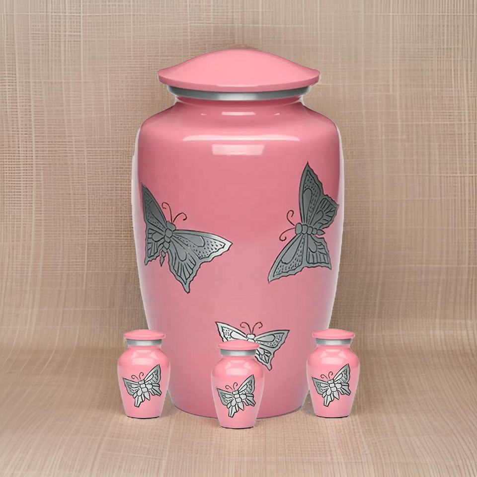 โถใส่เถ้ากระดูกอลูมิเนียมสำหรับผู้ใหญ่ลายผีเสื้อสีชมพูงานตามสั่งภาชนะใส่เถ้ากระดูกสีสันสดใสสำหรับตกแต่ง