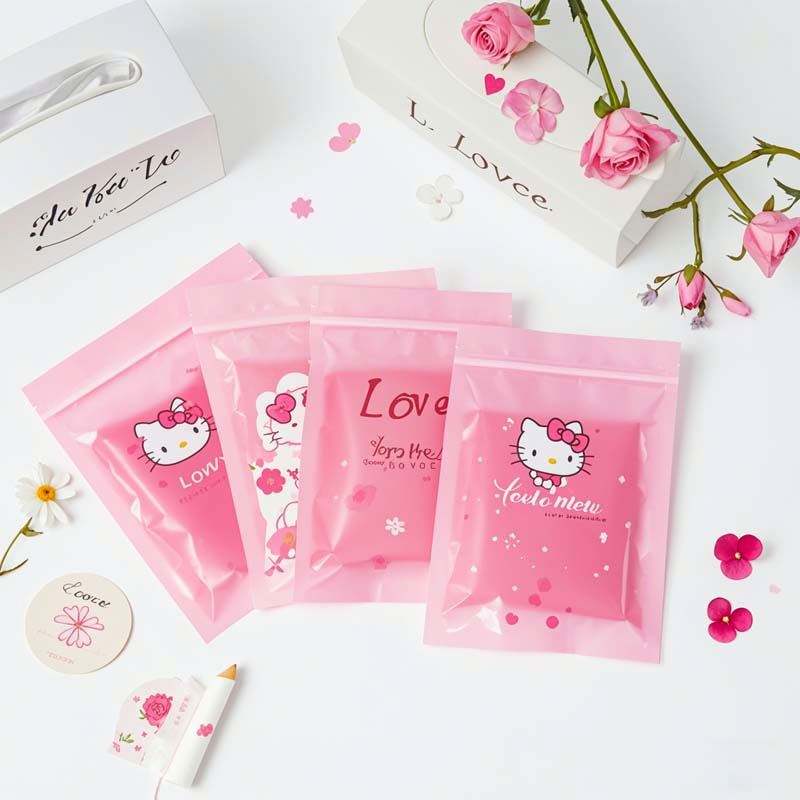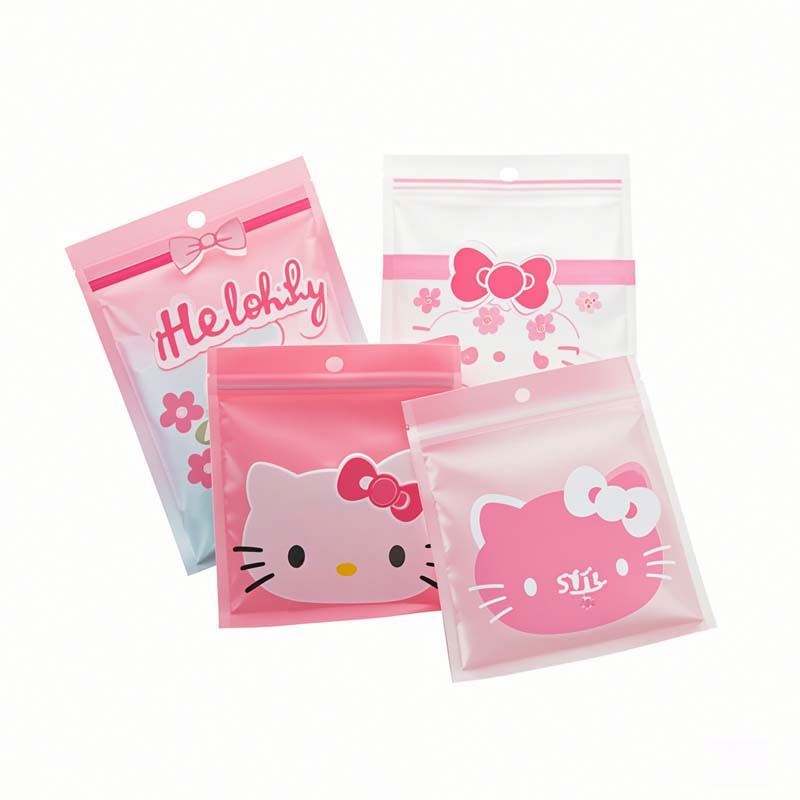 ถุงซิปล็อคขนาดเล็กน่ารักใสสีชมพูบรรจุซีล3ด้านถุงลามิเนตพร้อมรูแขวน