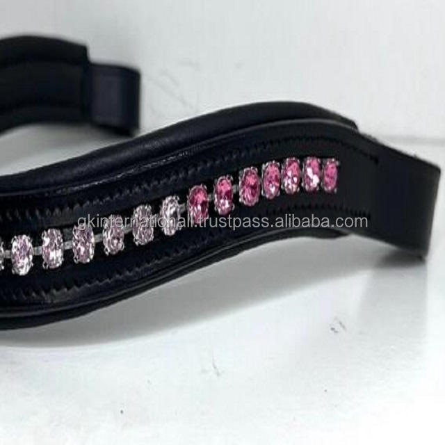 Customized Pink & Silver Crystals Diamante Chain Padded Leather Horse Brow Band for Bridle in Full Cob Over Sizes at Best Price