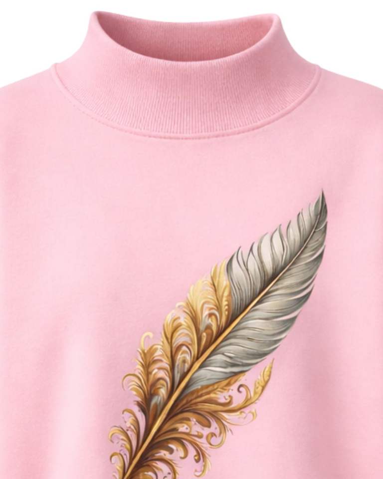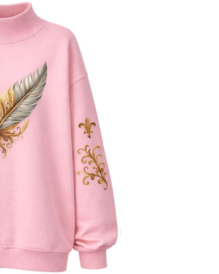 เสื้อสเวตเชิ้ตผู้หญิงสีชมพูแบบสั่งทำพิเศษ ทรงโอเวอร์ไซส์ ผ้าฟลีซ คอสูง ลายขนนก สวมใส่สบายสำหรับฤดูหนาว ผลิตจากผ้าฝ้ายผสมโพลีเอสเตอร์ อุ่นสบาย