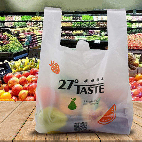 ถุงช้อปปิ้งพลาสติก HDPE ปรับแต่งได้ถุงรูปทรงสำหรับบรรจุภัณฑ์ของชำและอาหารพร้อมโลโก้ตามสั่ง