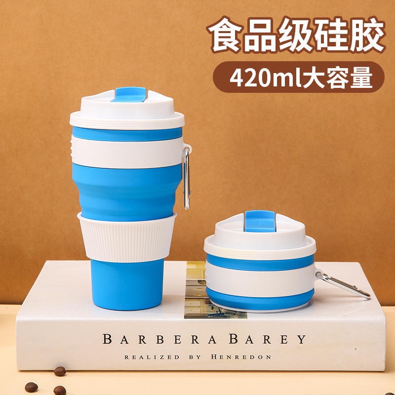 แก้วน้ำพับได้ซิลิโคนแพลตตินัมแบบกำหนดเอง สำหรับกาแฟและน้ำ ใช้พกพาสำหรับกีฬากลางแจ้งและการเดินทางสำหรับครอบครัว พร้อมขวดน้ำยาบ้วนปาก ของขวัญ