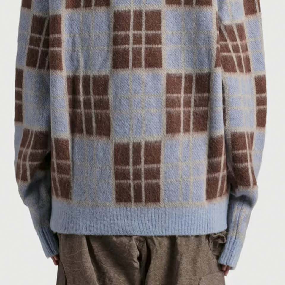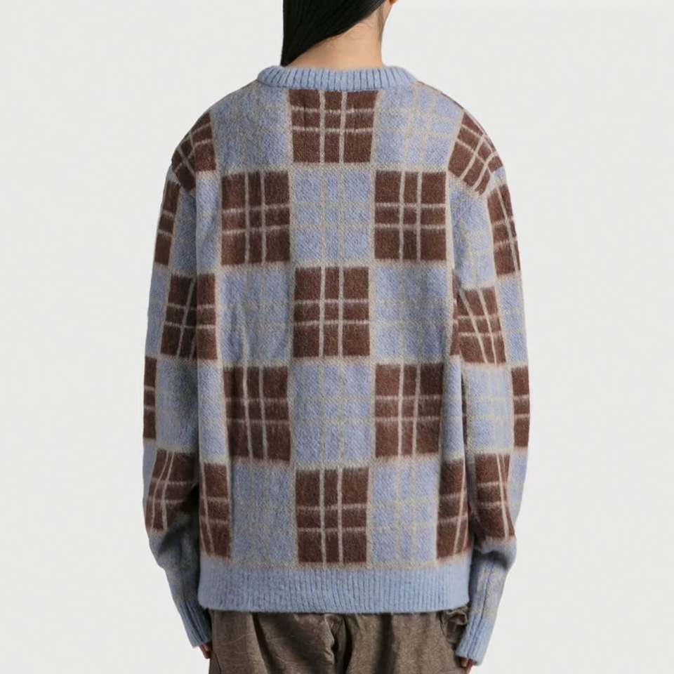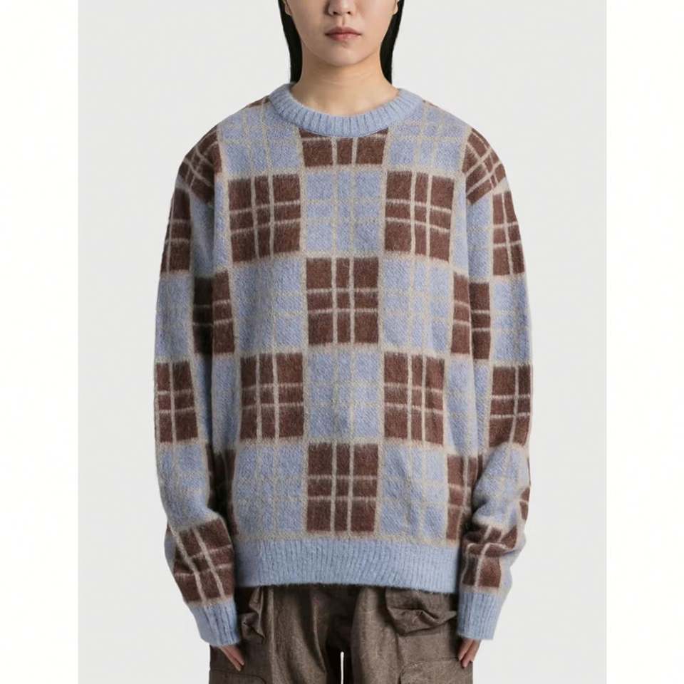 เสื้อสเวตเตอร์ถักแขนยาวสำหรับผู้ชายเสื้อสเวตเตอร์ถักลายตารางหมากรุกเสื้อสเวตเตอร์สำหรับชายและหญิง