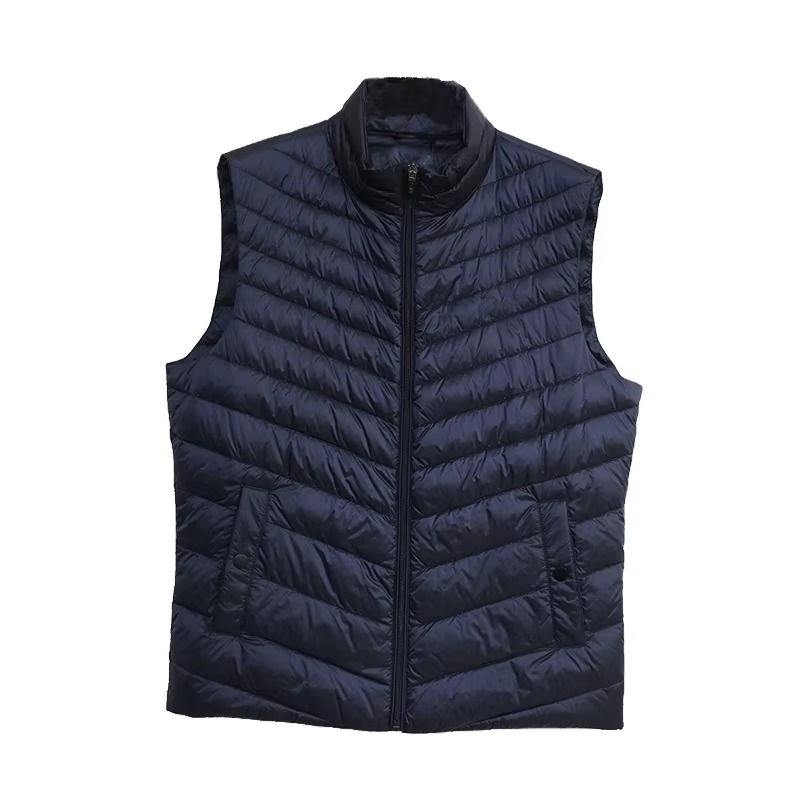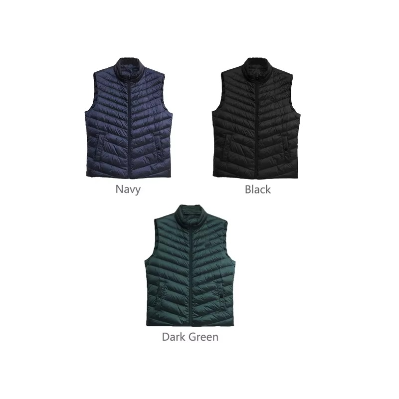 เสื้อกั๊กพัฟเฟอร์ผู้ชายไซส์ใหญ่แบบกำหนดเองได้ สำหรับฤดูใบไม้ร่วงและฤดูหนาว สีพื้น ไม่มีแขน พิมพ์ลายได้ ใส่ได้ทั้งชายและหญิง ผ้าไนลอนลำลอง มีกระเป๋า