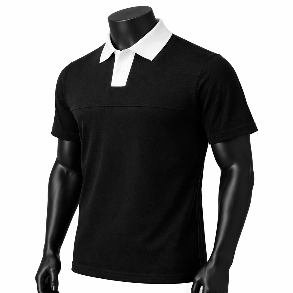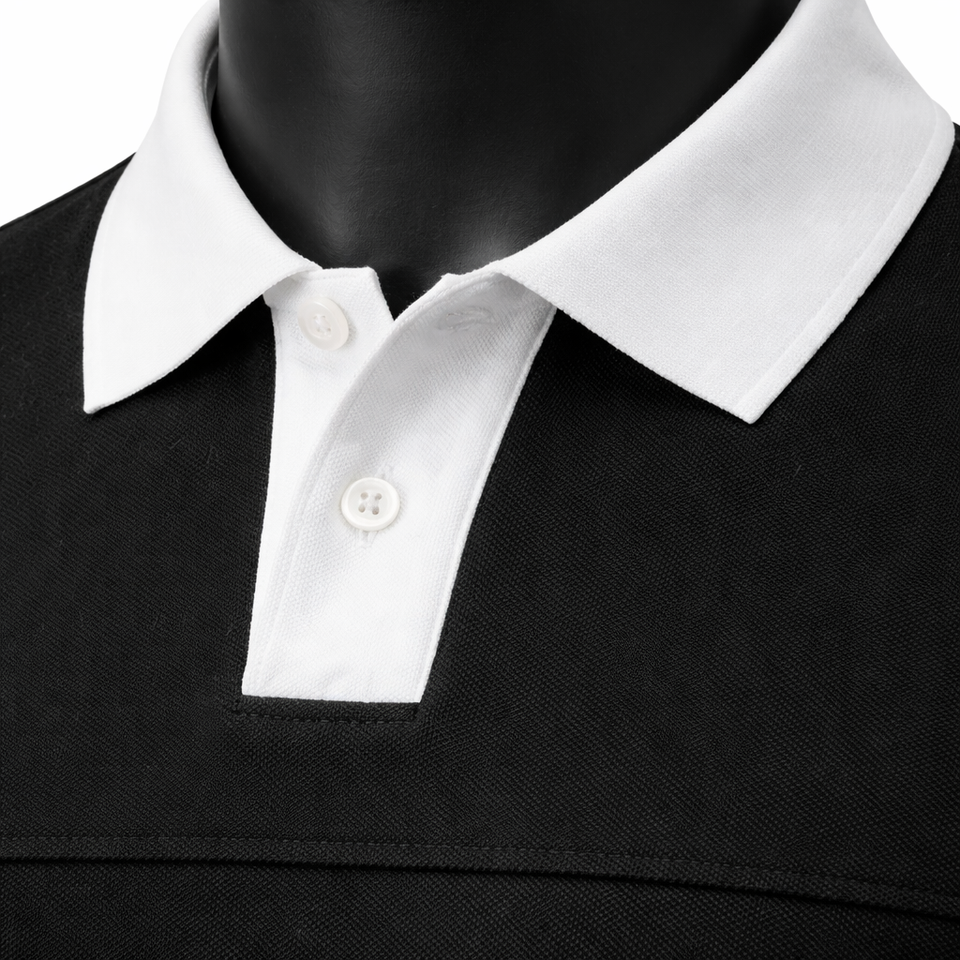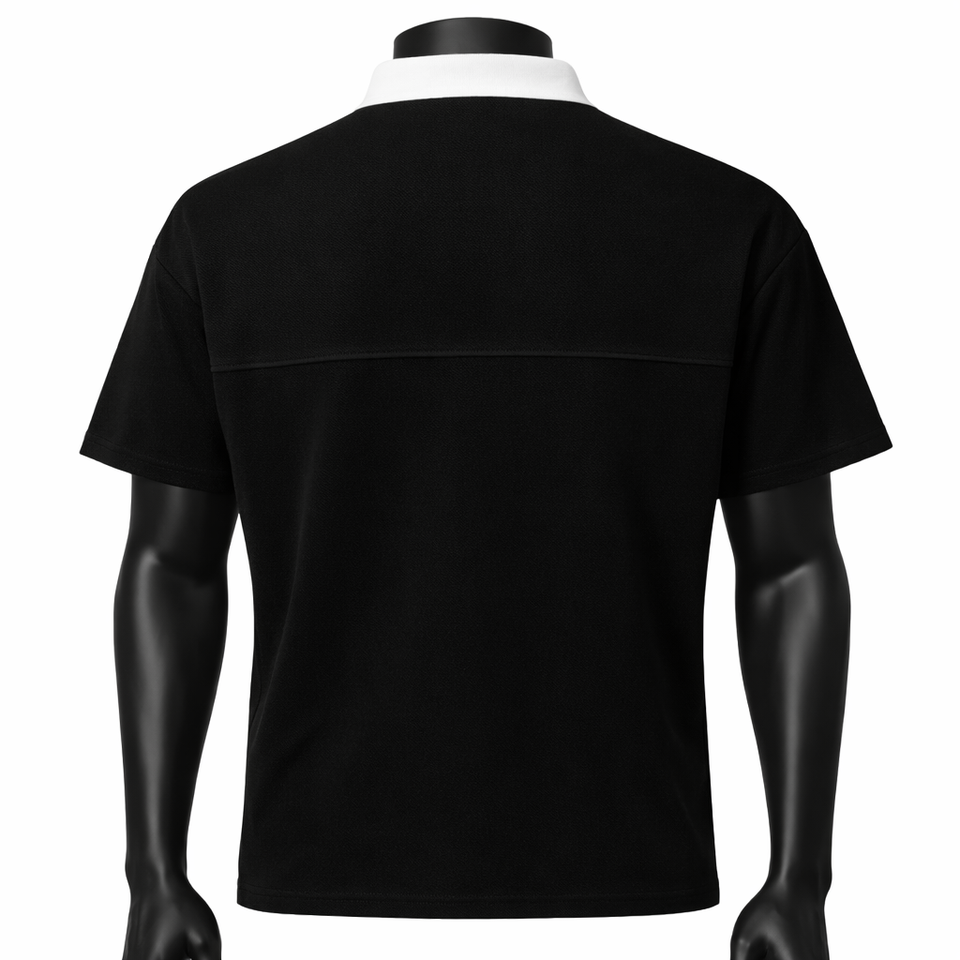 เสื้อโปโลชายสีดำ คอปกสีขาว แบบเรียบ รับผลิตตามแบบ OEM ODM แบรนด์ส่วนตัว