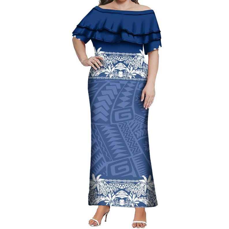 ชุดเดรสลายชนเผ่าโพลินีเซียนแบบสั่งทำพิเศษ แต่งระบายสองชั้น ปี 2025 ผ้าคลุมไหล่สไตล์ตองกา-ซามัว สำหรับงานราตรีและงานพรอม