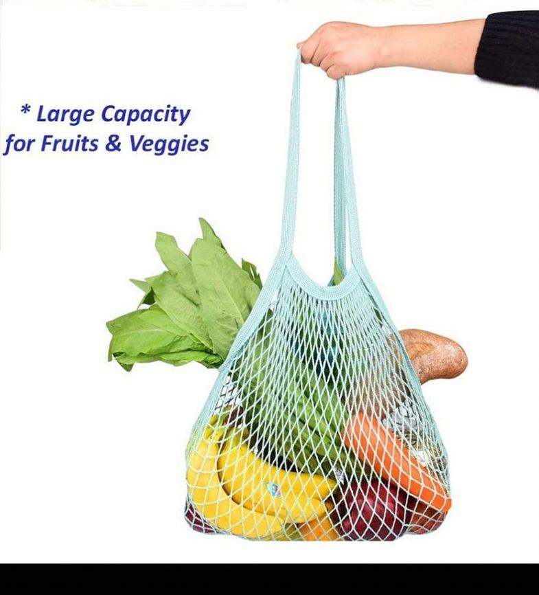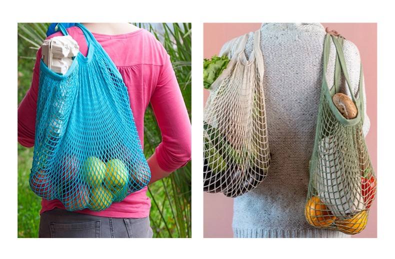 กระเป๋าผ้าตาข่ายพกพาแบบกำหนดเอง กระเป๋าช้อปปิ้งใส่ของชำนำกลับมาใช้ใหม่ได้ทันสมัย สีสันสดใส พร้อมโลโก้สั่งทำสำหรับใส่ผลไม้