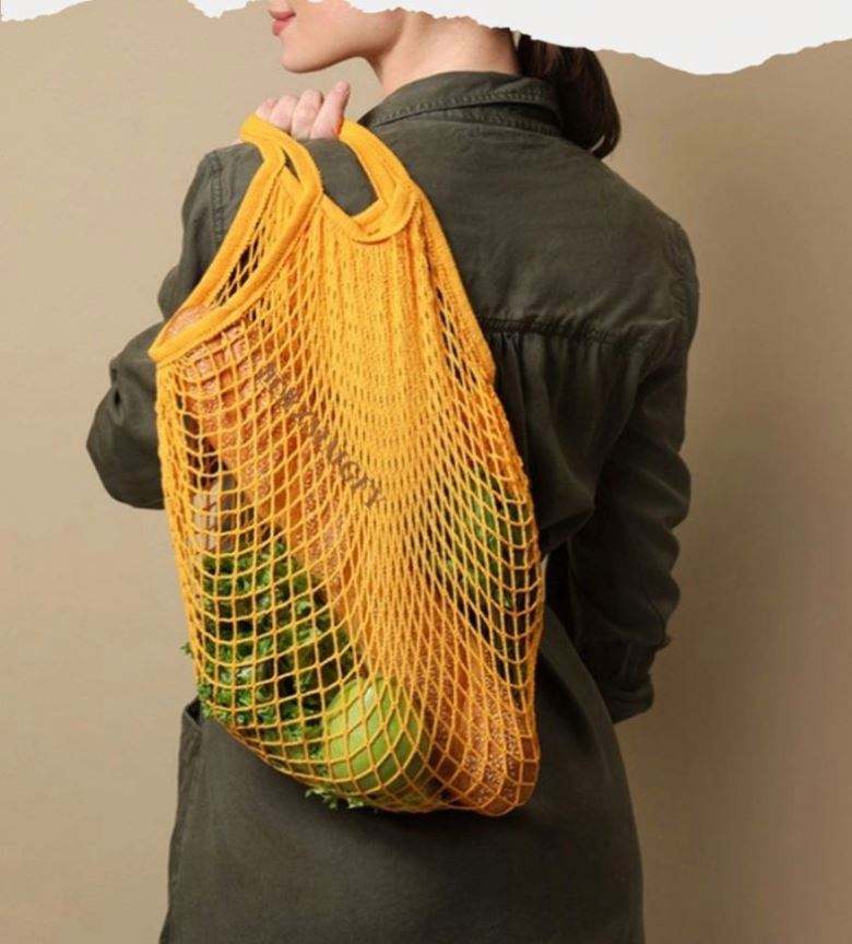 กระเป๋าผ้าตาข่ายพกพาแบบกำหนดเอง กระเป๋าช้อปปิ้งใส่ของชำนำกลับมาใช้ใหม่ได้ทันสมัย สีสันสดใส พร้อมโลโก้สั่งทำสำหรับใส่ผลไม้
