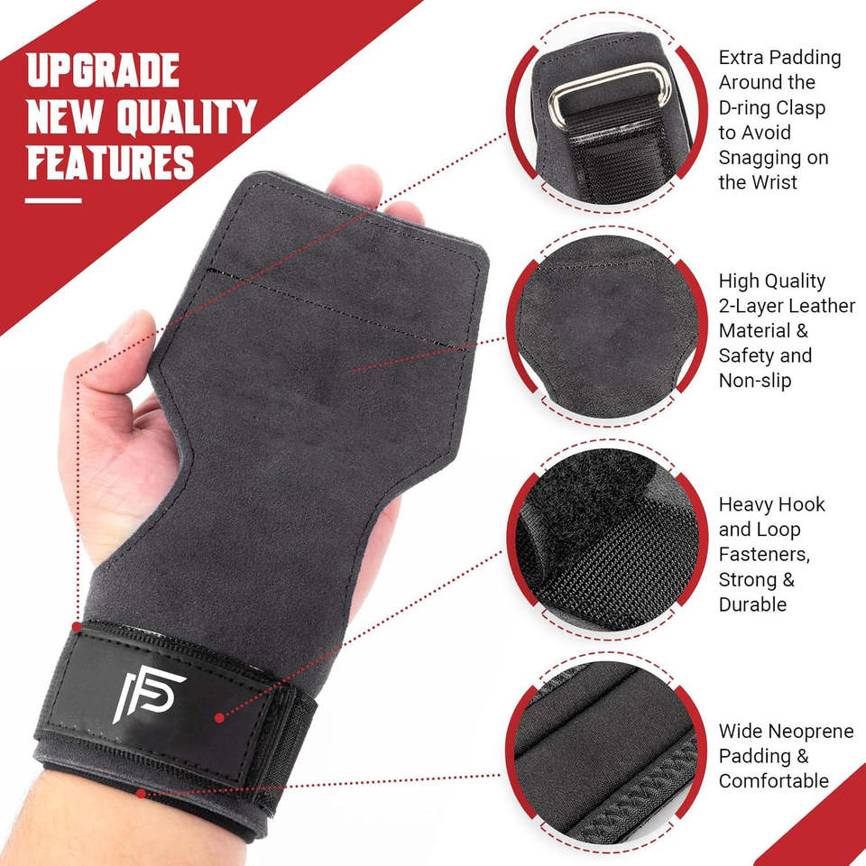 ตะขอเกี่ยวสำหรับยกน้ำหนักแบบปรับได้ พร้อมที่จับหนังหุ้มนีโอพรีน สายรัดข้อมือแบบปรับได้ สำหรับเดดลิฟท์ เพิ่มความปลอดภัยในการออกกำลังกาย