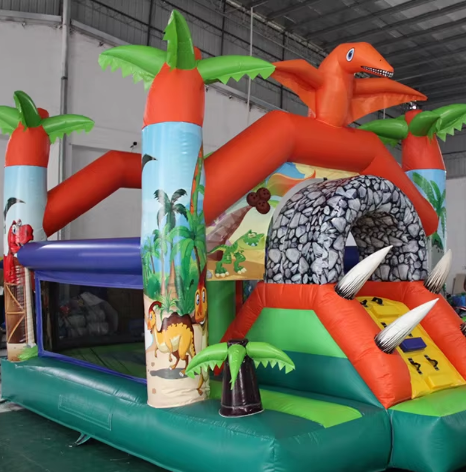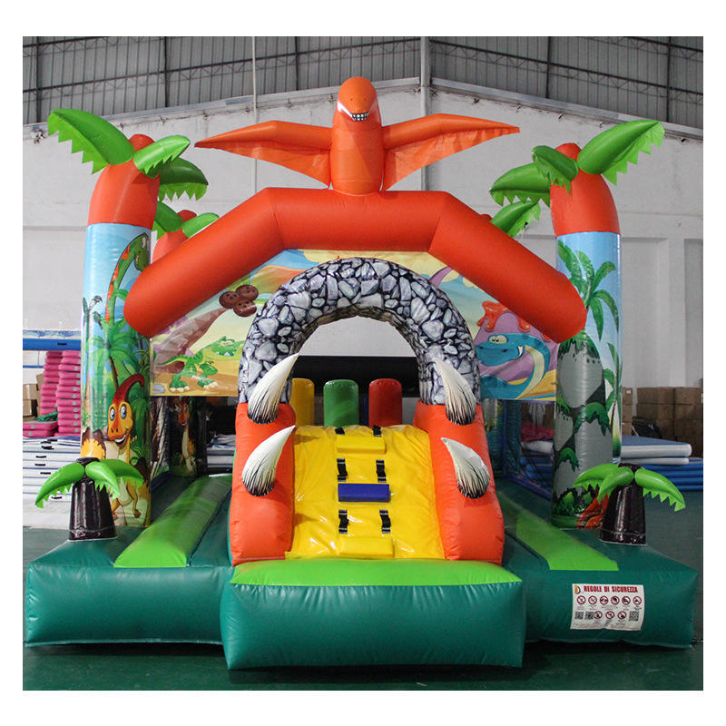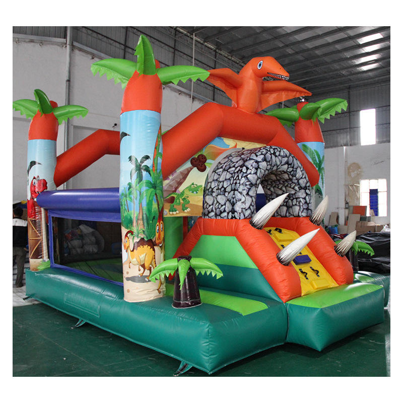 แทรมโพลีนเป่าลมกลางแจ้งสำหรับเด็กรูปไดโนเสาร์ปราสาทเป่าลมธีมป่าตามประเพณี