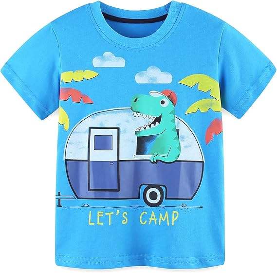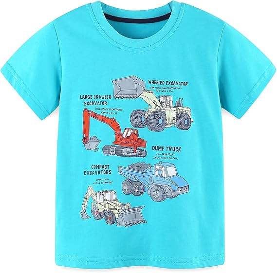 เสื้อยืดคอกลมแขนสั้นสำหรับ2-6ปีพิมพ์ลายสำหรับเด็กชายวัยหัดเดิน