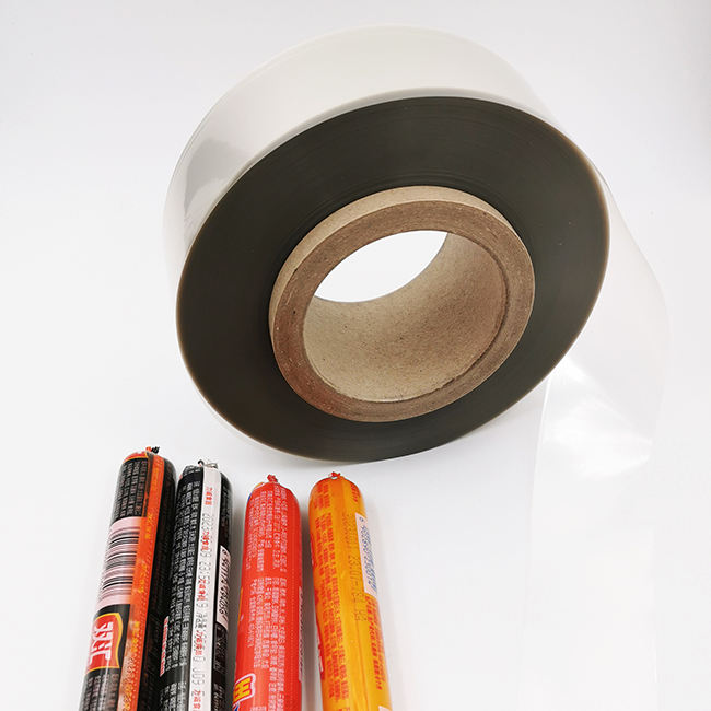 ชื่อผลิตภัณฑ์:ปลอกไส้กรอก PVDC กั้นสูงพิมพ์แบบกำหนดเองสำหรับไส้กรอก