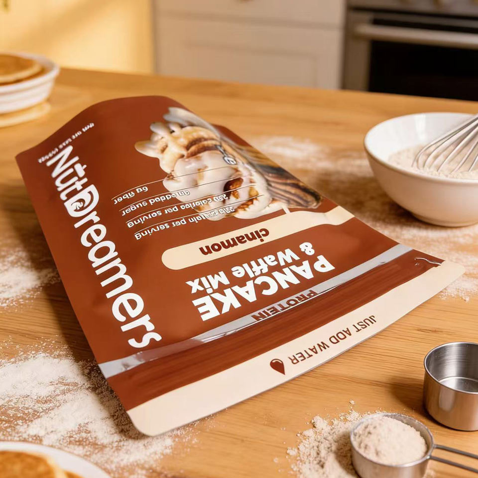 ถุงพลาสติกแบบตั้งได้พิมพ์ลายตามสั่ง ป้องกันความชื้น ใช้ซ้ำได้ สำหรับบรรจุภัณฑ์เบเกอรี่ โปรตีน ซีเรียล ผงอาหาร เกรดอาหาร