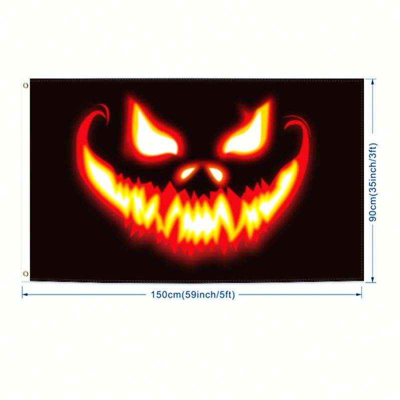 ธงฟักทองออกแบบได้เองธงกลางแจ้งพิมพ์ลายวันฮาโลวีนที่น่ากลัวแบบปรับแต่งได้