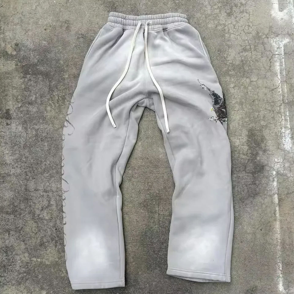 ชุดวอร์มผ้าฝ้าย100% สีเทาสำหรับผู้ชายชุดวอร์มโอเวอร์ไซส์พิมพ์ลายแบบกำหนดเองสำหรับฤดูร้อน