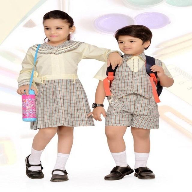 ชุดนักเรียนอนุบาลและประถมศึกษาแบบกำหนดเอง ผ้าลายตารางหมากรุก สำหรับเด็กชายและเด็กหญิง