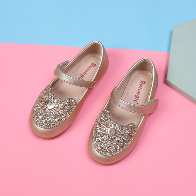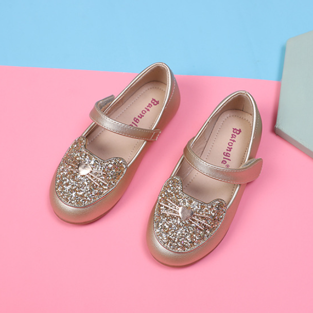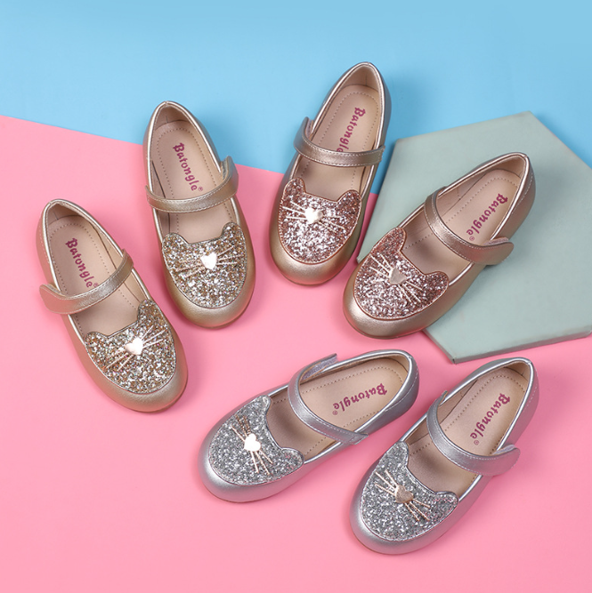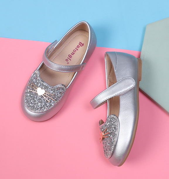 Mary Jane รองเท้าหนังสำหรับเด็กผู้หญิงรองเท้าเดรสมีประกายส้นแบนสำหรับเด็กผู้หญิง