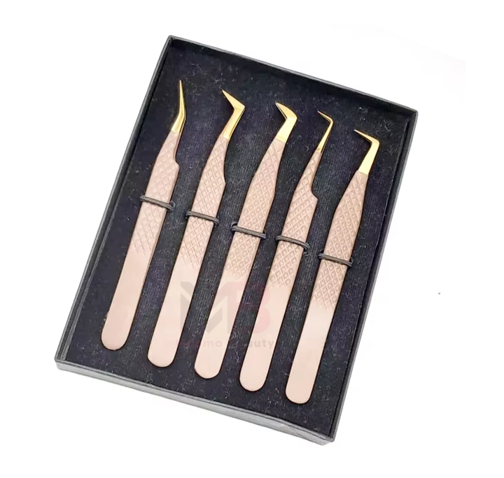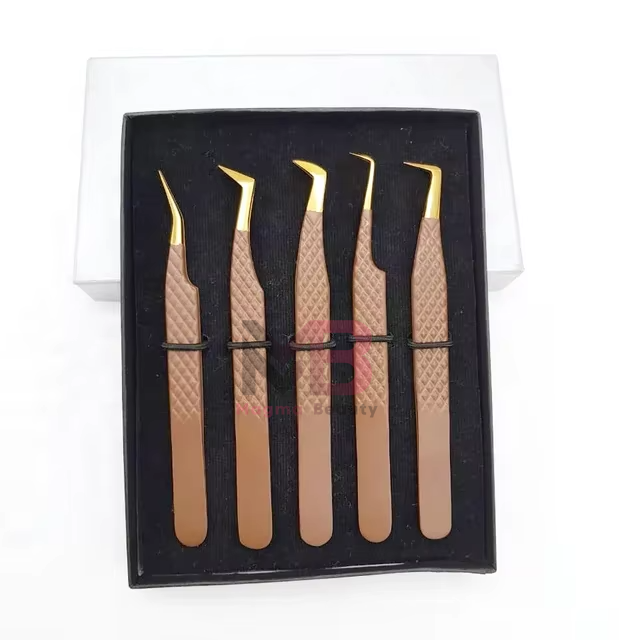 ชุดแหนบต่อขนตาปลายแหลมสแตนเลสแบบมืออาชีพ พร้อมกระจกและอุปกรณ์เสริมความงาม
