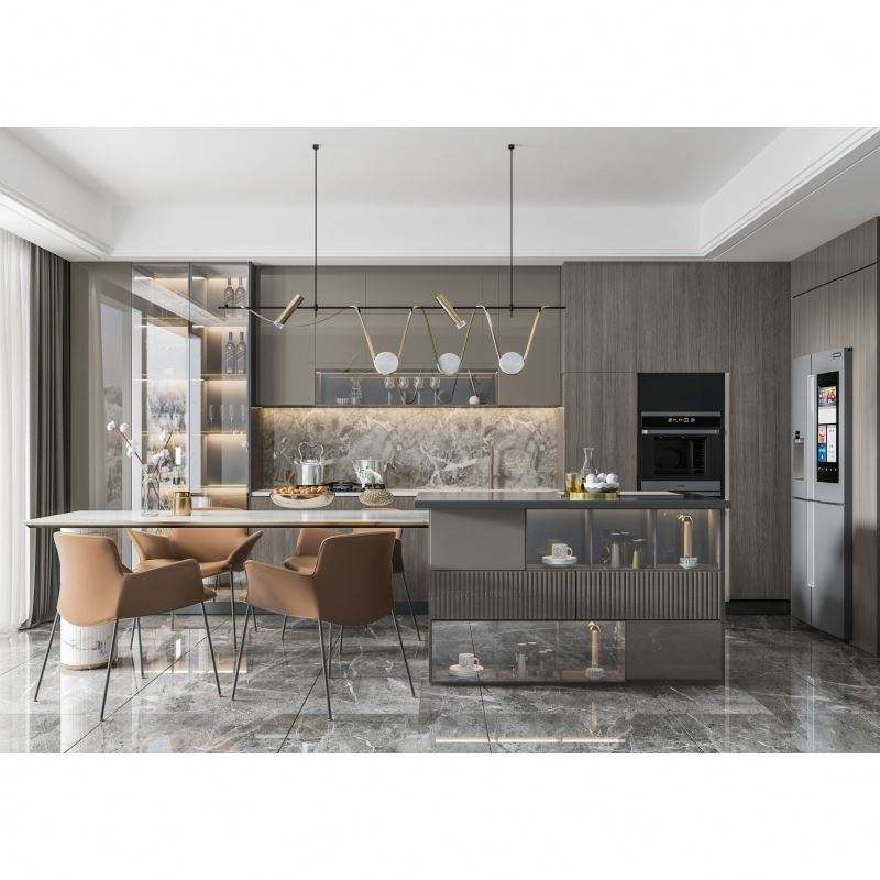 ตู้ครัวโครงการสั่งทำพิเศษ ตู้ครัวโมดูลาร์หรูหรา ลายไม้วอลนัทดำเคลือบผิว พร้อมสีที่กำหนดเอง