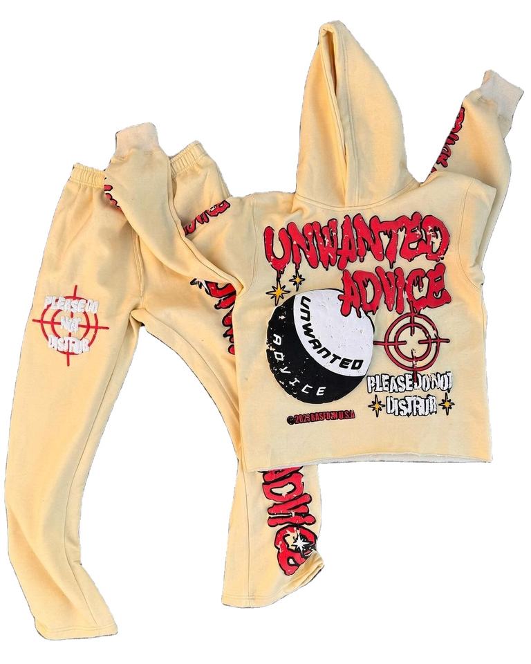 เสื้อวอร์มผู้ชายพิมพ์ลายพัฟออกแบบได้ตามต้องการเสื้อครอปแบบมีฮู้ดตัดชายเสื้อและกางเกงวอร์มขาบานสำหรับทุกเพศ