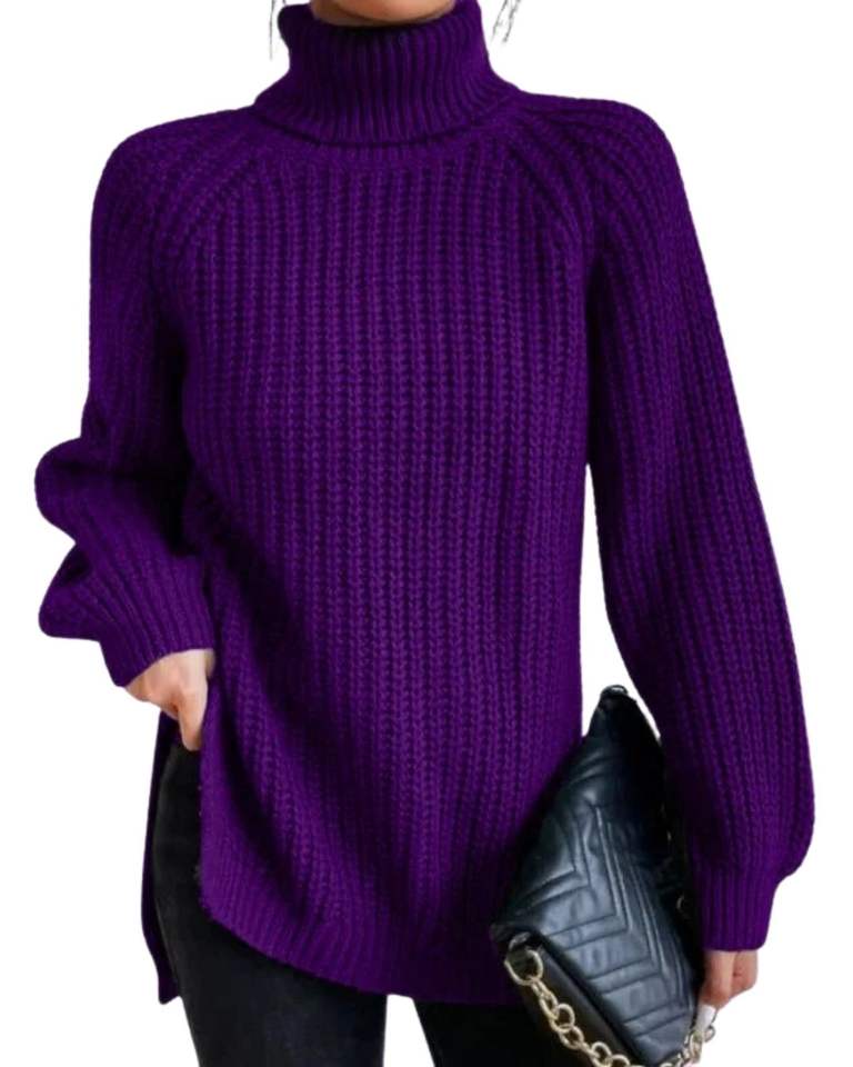 เสื้อสเวตเตอร์คอเต่าสีม่วงแบบกำหนดเองสำหรับผู้หญิง เสื้อไหมพรมแขนยาวสำหรับฤดูหนาว ให้ความอบอุ่น สวมใส่สบาย แฟชั่นลำลอง เนื้อผ้านุ่ม ยืดหยุ่น