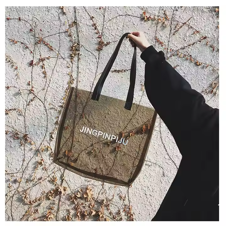 ถุงผ้าพีวีซีเยลลี่ช้อปปิ้งโปร่งใสปรับแต่งได้ความจุขนาดใหญ่กระเป๋าเก็บของขวัญเดินทางชายหาดสะพายไหล่ข้างเดียวสำหรับใช้งานกลางแจ้ง