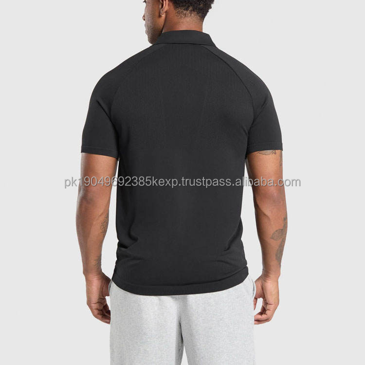 เสื้อโปโลแบบแห้งเร็วสำหรับผู้ชายเสื้อกอล์ฟเล่นกีฬาระบายอากาศได้ดีเสื้อโพลีเอสเตอร์เข้ารูปกระชับกล้ามเนื้อ