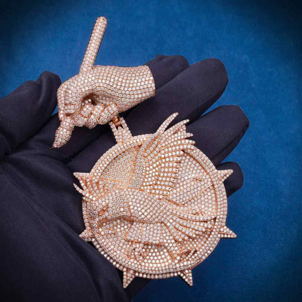 จี้รูปสัตว์ประดับมอยส์ซาไนต์ ดีไซน์แบบแร็ปเปอร์สุดเท่ ทำจากเงินแท้ 925 ชุบโรเดียมและทอง 14K