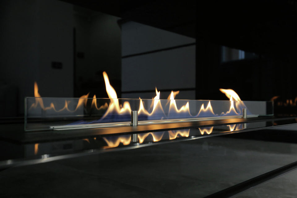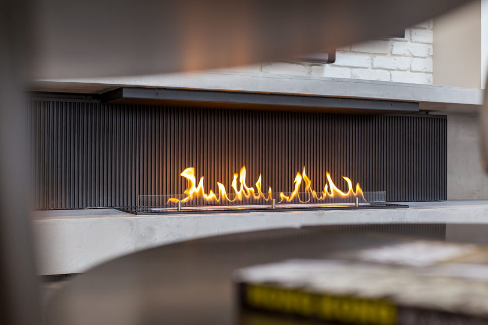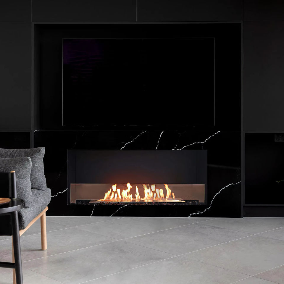 เตาผิงแอลกอฮอล์แบบติดผนัง ดีไซน์ร่วมสมัย โครงเหล็กโครเมียม สำหรับใช้ภายใน/ภายนอกอาคาร พร้อมที่วางทีวีในตัว เหมาะสำหรับห้องนั่งเล่น