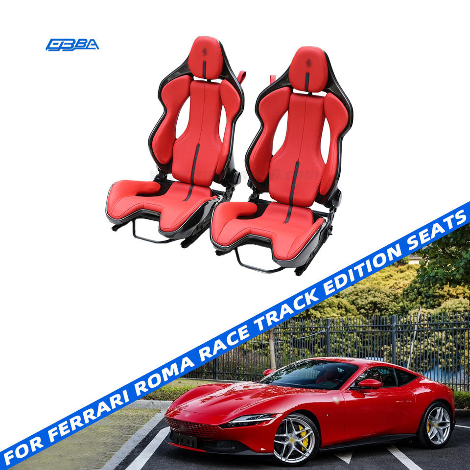 เบาะรถยนต์คาร์บอนไฟเบอร์สีแดงแบบกำหนดเองสำหรับรถเฟอร์รารี่ โรมา คูเป้ สไปเดอร์ เบาะรถแข่งหุ้มหนัง Nappa