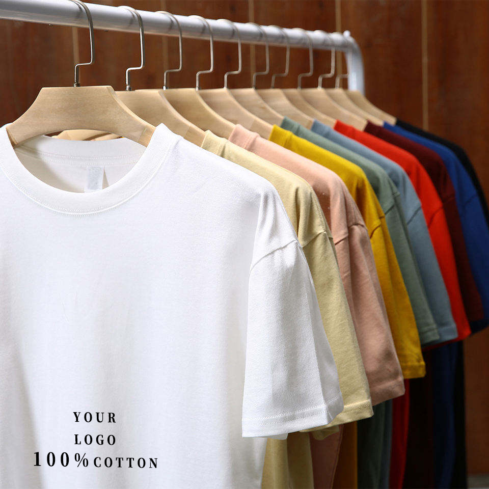เสื้อยืดลำลองผู้ชายทรงปกติแบบสั่งทำพิเศษ ผ้าฝ้าย 100% แขนสั้น ไม่มีลาย สำหรับพิมพ์โลโก้แบรนด์ของคุณเอง ขายส่ง