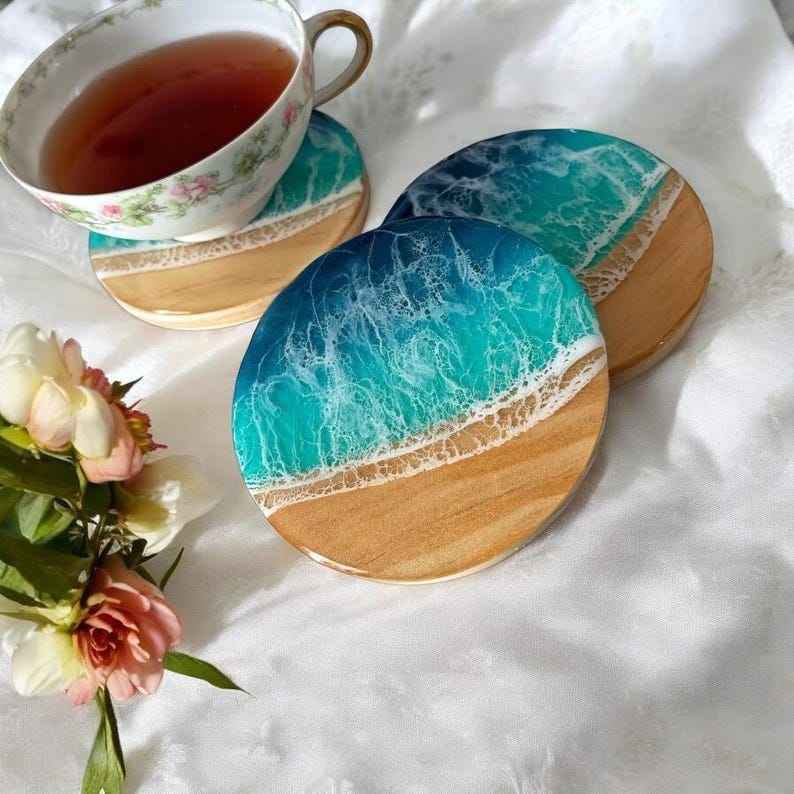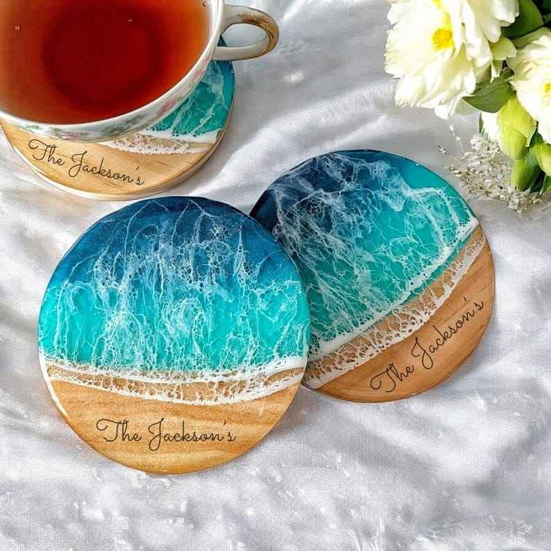 จานรองแก้วเรซินและไม้ที่กำหนดเองด้วยหินรายละเอียดที่สมบูรณ์แบบสำหรับนักวางแผนจัดงานแต่งงานของขวัญขององค์กร
