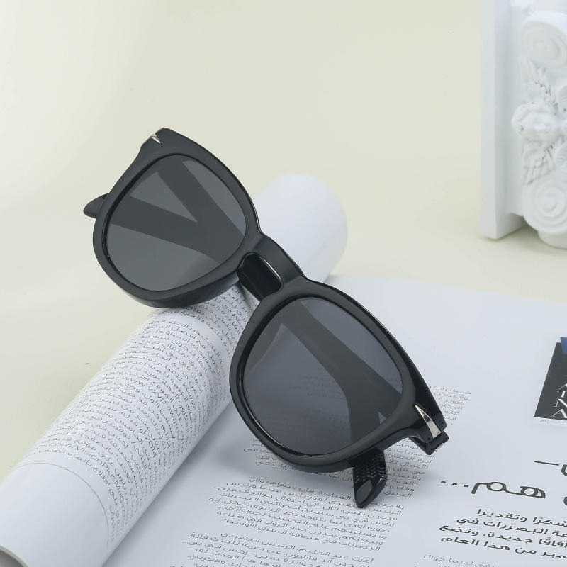 แว่นกันแดดโพลาไรซ์ทรงรีสไตล์เรโทรแบบกำหนดเองสำหรับผู้ชาย กรอบสีดำ เลนส์ TAC ป้องกันรังสียูวี 400 สไตล์อินสตาแกรม บรรจุกล่อง