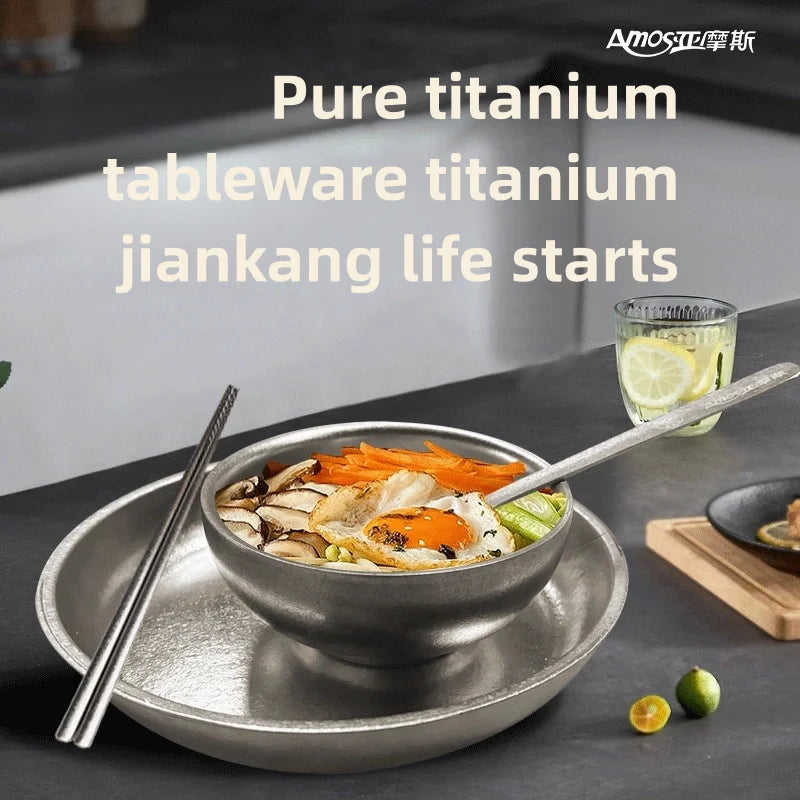 ชุดภาชนะอาหารไทเทเนียมแบบนำกลับมาใช้ใหม่ได้ตามต้องการประกอบด้วยชามตะเกียบช้อนและจานสำหรับเป็นของขวัญทางธุรกิจ