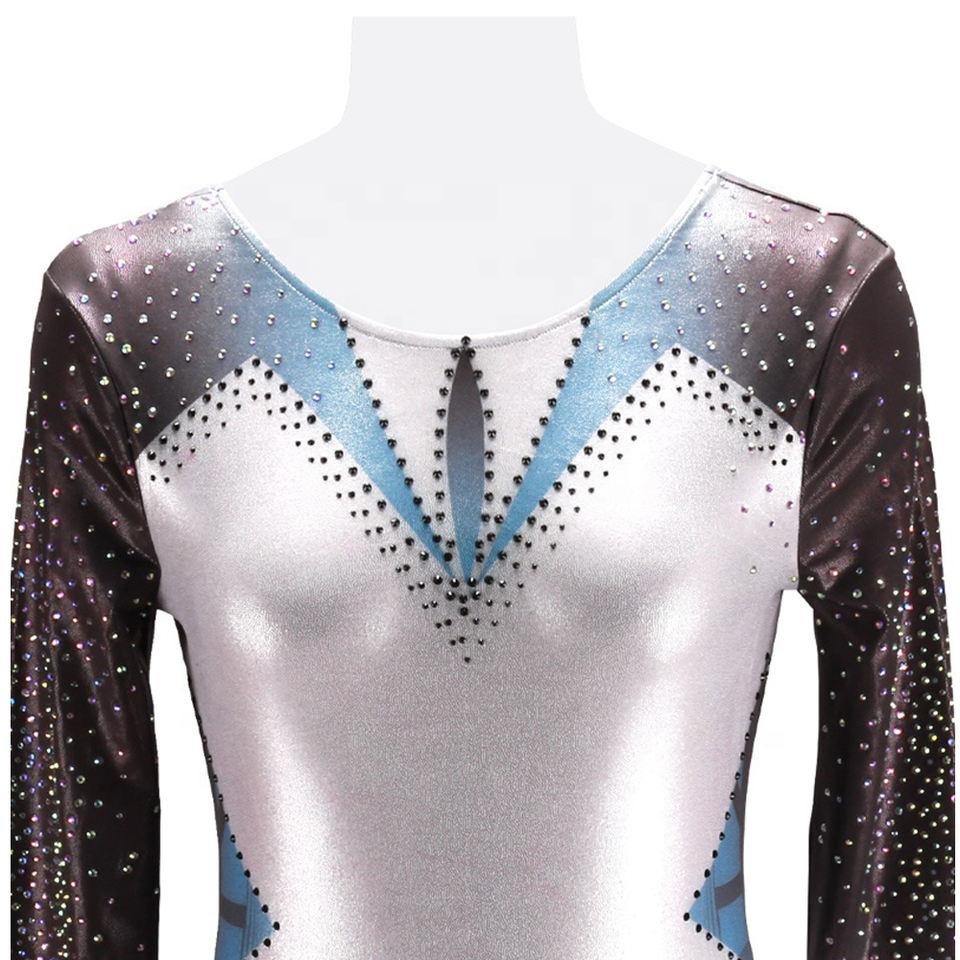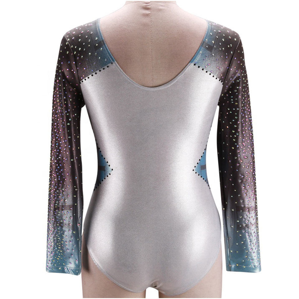 ชุดรัดรูปเล่นยิมนาสติกลีลาทำจากพลอยเทียมไล่ระดับสีเทาผ้าโพลีเอสเตอร์ทนทานออกแบบได้ตามต้องการ