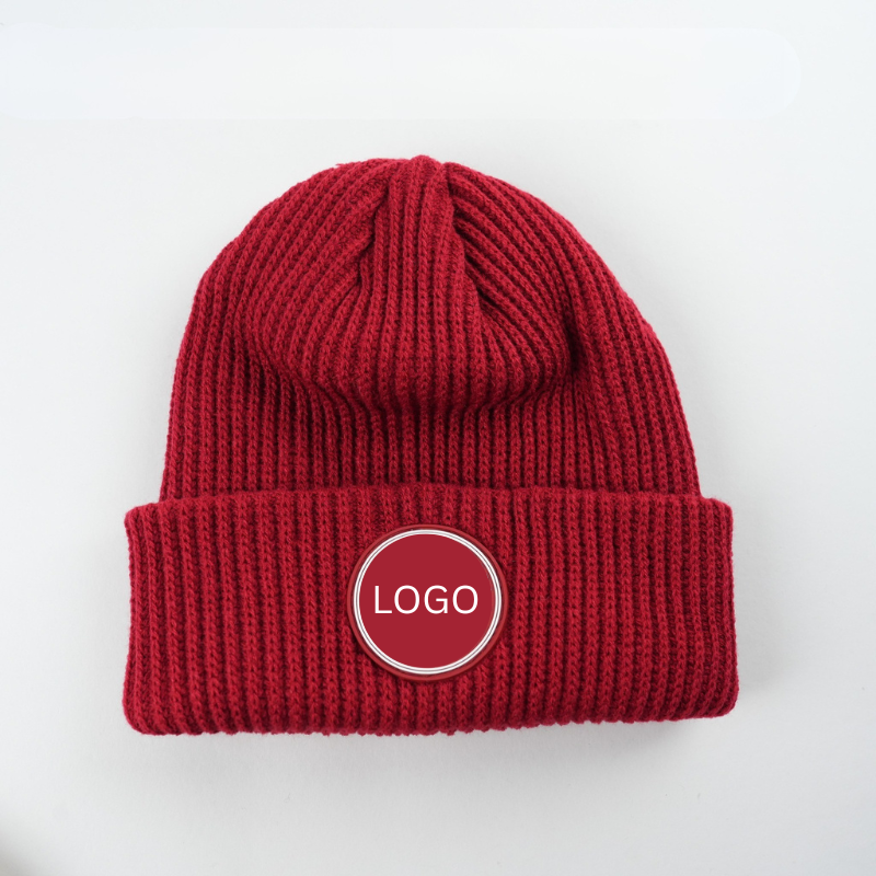 Customized Rubber Patch Logo Acrylic Beanie Hats Warm Winter Hat Wholsale Custom Knit Beanies Vietnam Knitting Factory