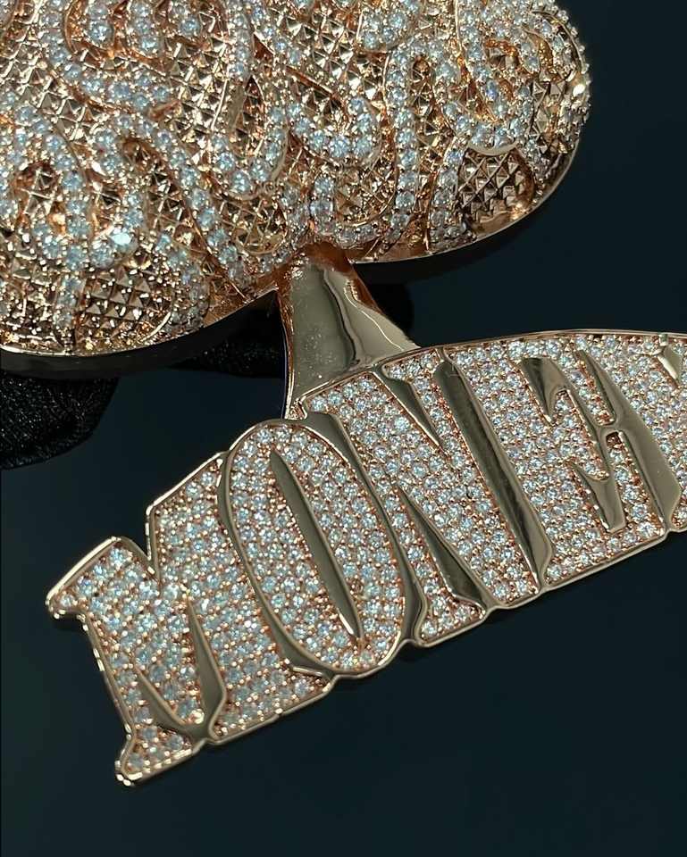 จี้เพชรโมอิสซาไนต์รูปหัวใจแบบฮิปฮอปสุดหรู ชุบโรเดียม ขนาด 2 นิ้ว x 1.5 นิ้ว ตัวอักษรแบบกำหนดเอง S925 Ice D VVS