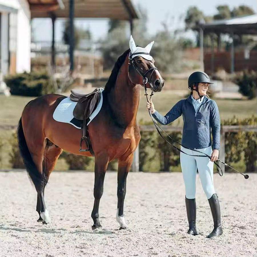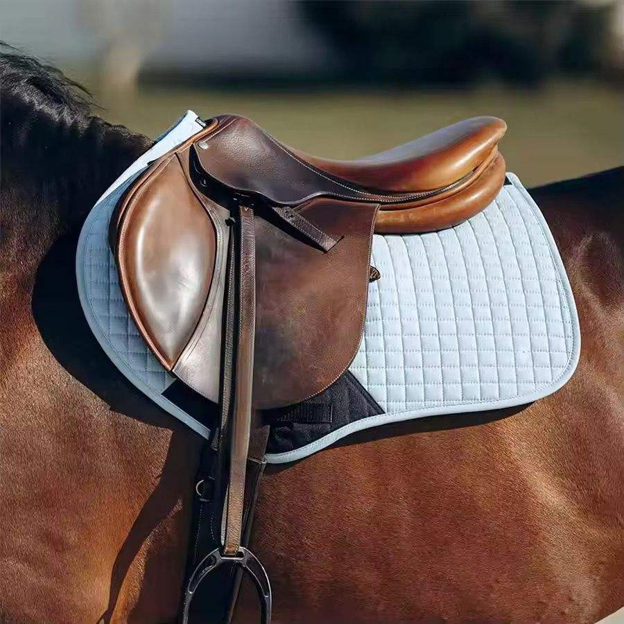 แผ่นรองอานม้าสำหรับขี่ม้าแบบกระโดด ทำจากผ้าซาตินแบบสั่งทำพิเศษ พร้อมคุณสมบัติการดูดซับแรงกระแทก