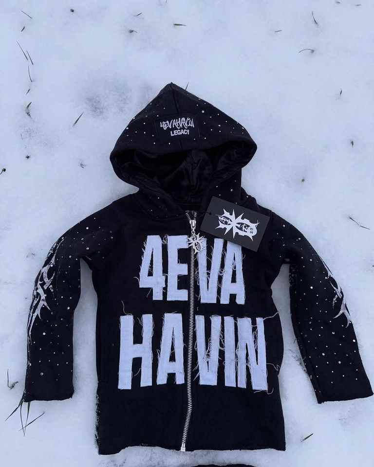 ชุดแทรคสูทสตรีทแวร์คุณภาพพรีเมียม พิมพ์ลายสกรีนแบบกำหนดเอง ประดับด้วยคริสตัลและงานปักแบบดิสเทรส ผ้า 500 GSM