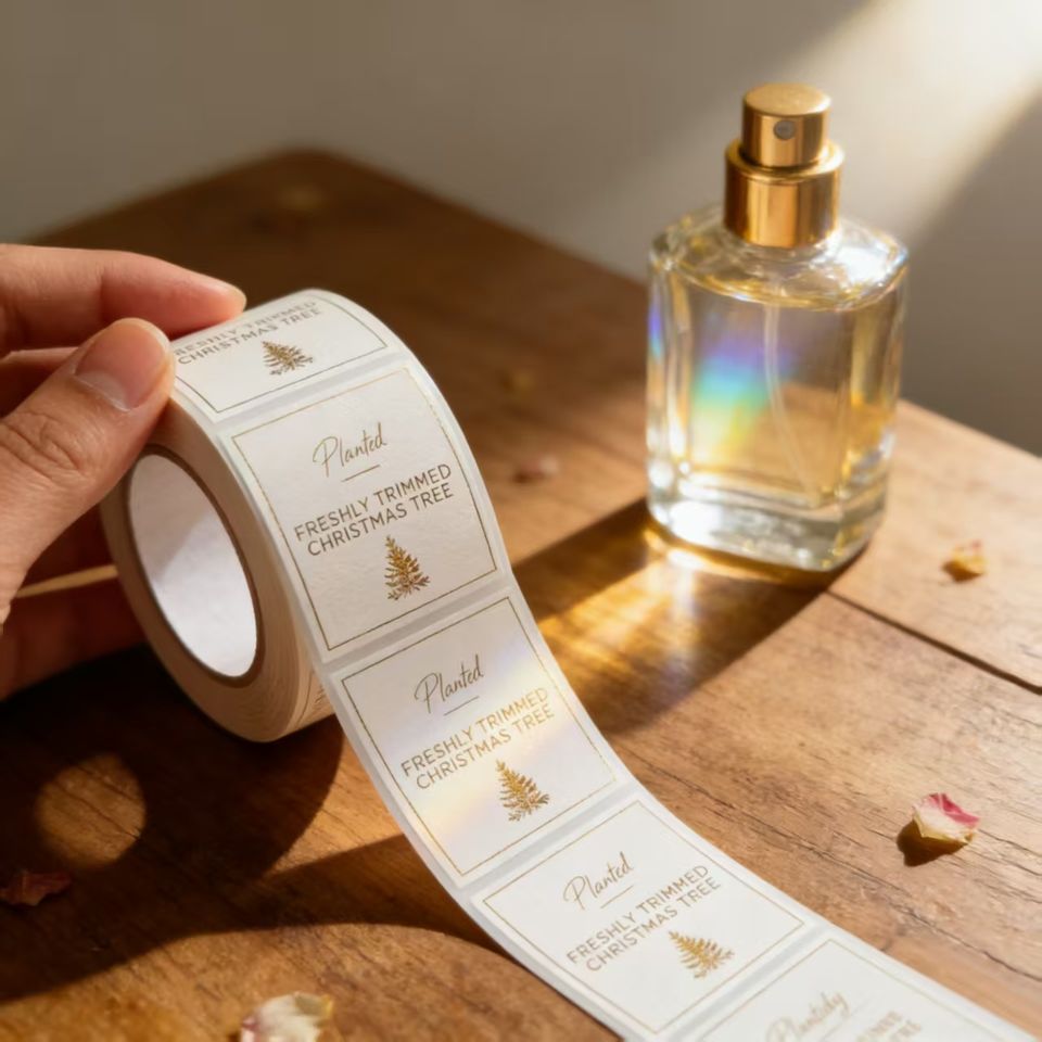 สติกเกอร์และฉลากใสพิมพ์ลายแบบกำหนดเองสำหรับติดกระป๋องเครื่องสำอางแบบกันน้ำเคลือบฟอยล์ทอง