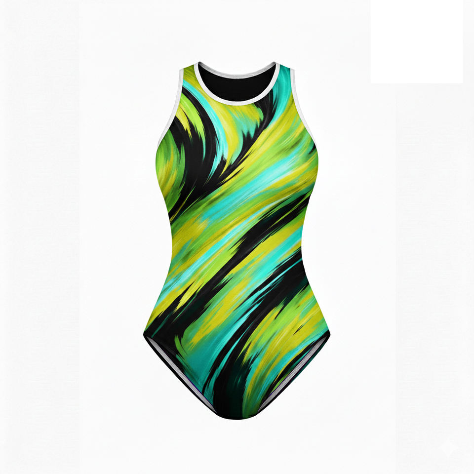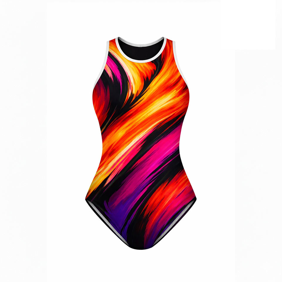 ชุดว่ายน้ำวันพีซแบบเซ็กซี่พิมพ์ลาย ตัดสูง แห้งเร็ว กันน้ำ สำหรับทุกเพศ