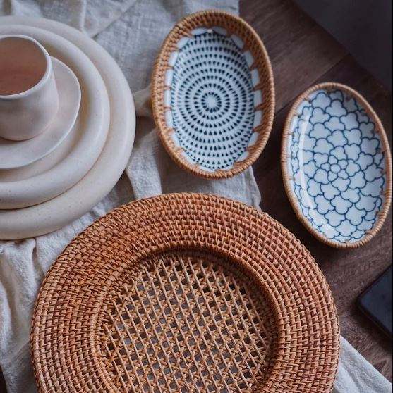 ถาดเสิร์ฟอาหารทำจากหวายถาดเสิร์ฟอาหารแบบกำหนดรูปร่างและขนาดได้