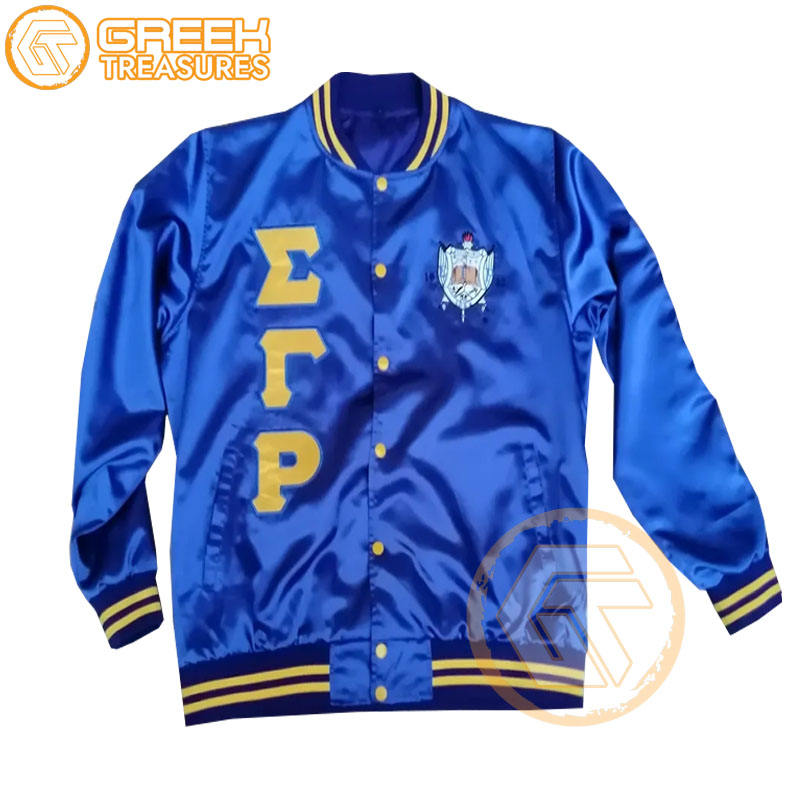 แจ็กเก็ตสตรี Sigma ผ้าซาตินแบบปักลายแกมม่าผ้าซาติน