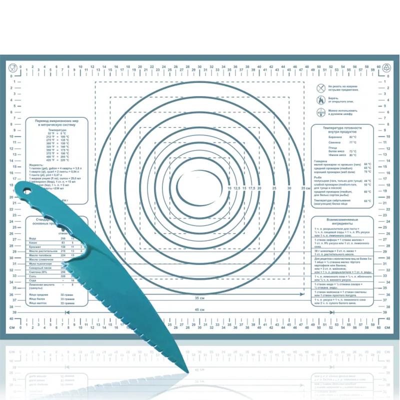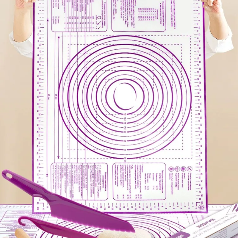 แผ่นซิลิโคน66*46สำหรับการอบไม่ติดม้วนแป้งพร้อมการวัด