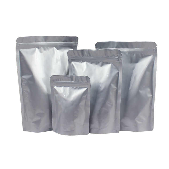 Customized Silver Food Grade Zipper Plastic Bag Stand up Packing Triple Laminated Reusable Esd Large Aluminum Foil Bag