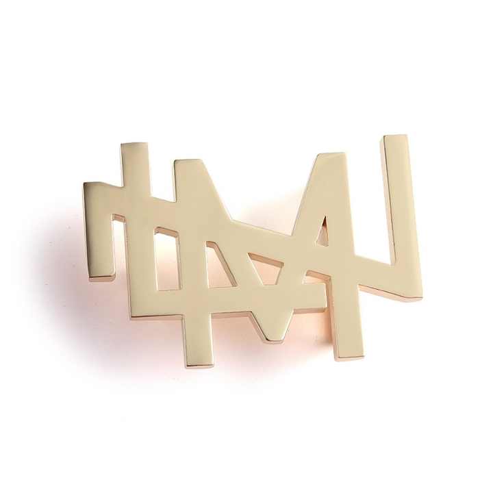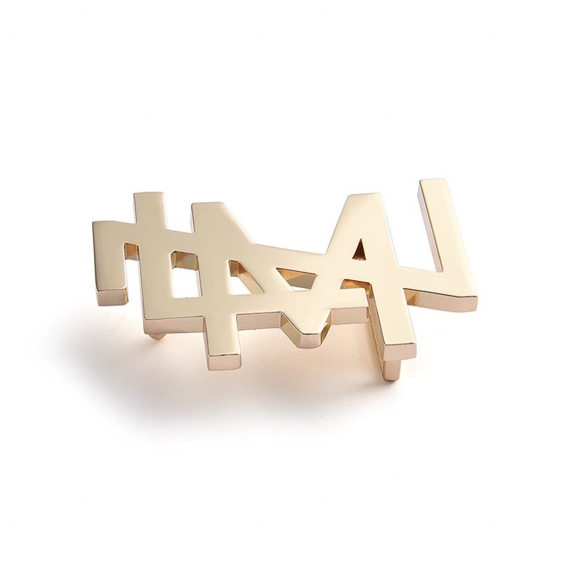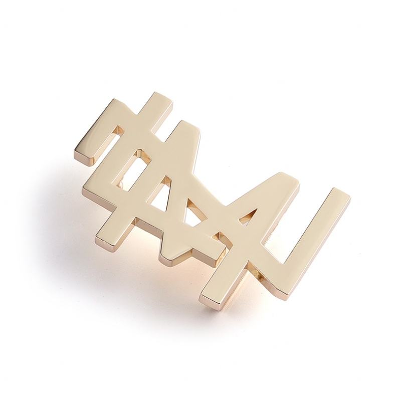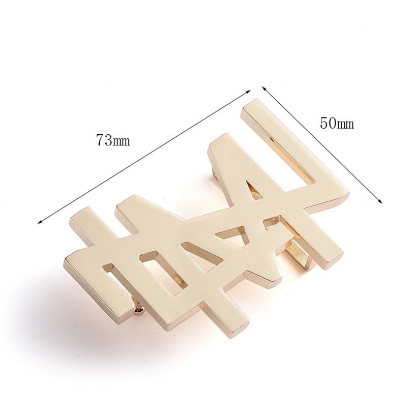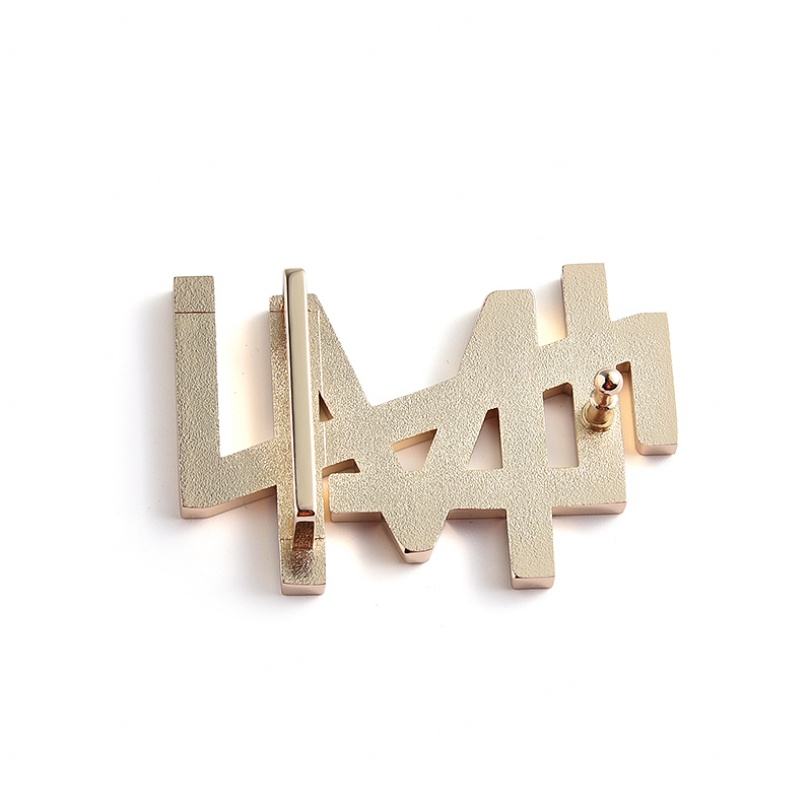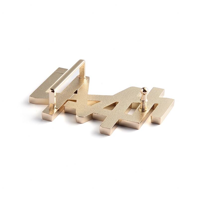 ป้ายชื่อโลหะตัวอักษรเรียบง่ายแบบกำหนดเองพร้อมหัวเข็มขัดทองสำหรับผู้ชาย
